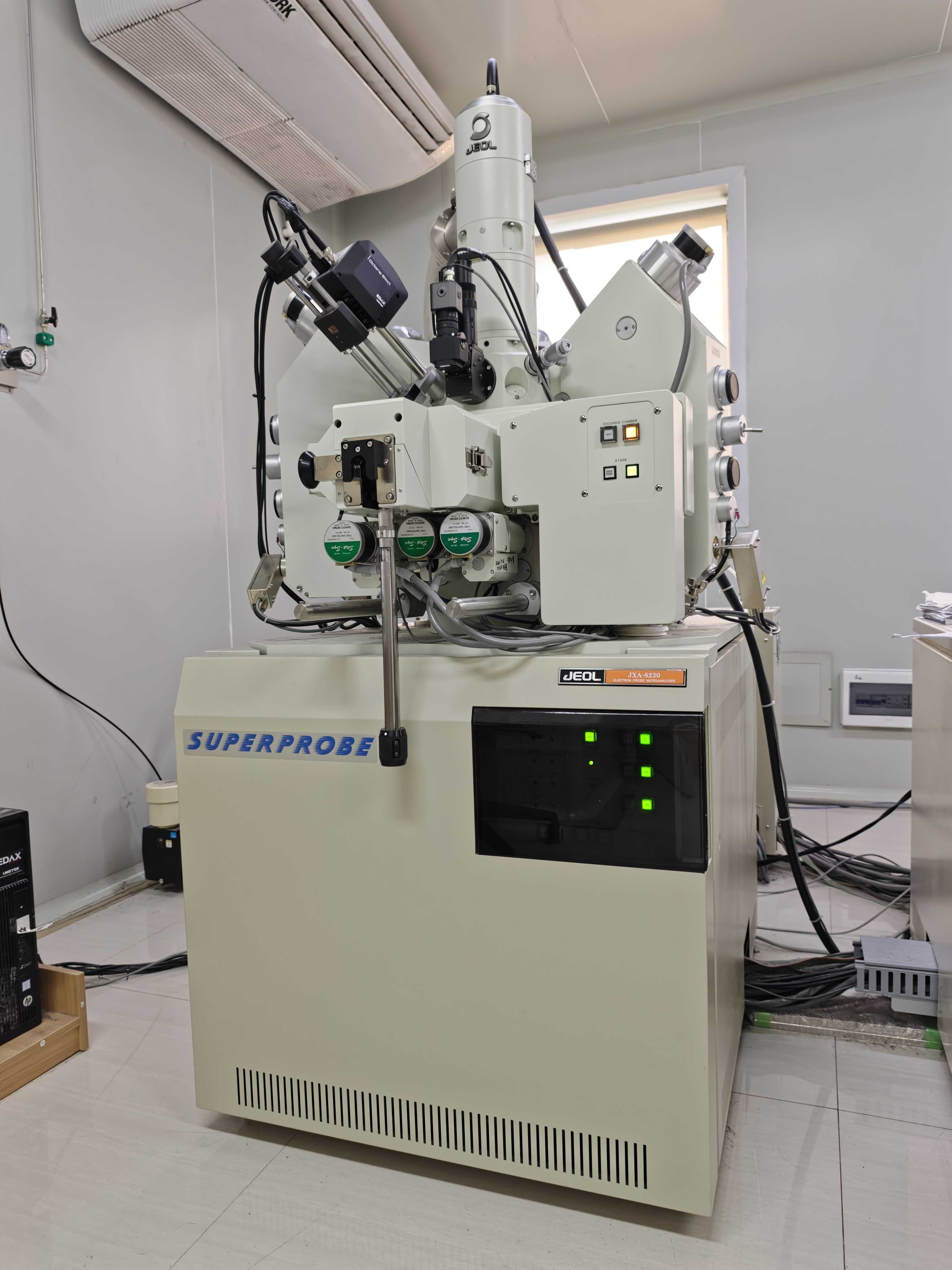 本实验室配备有两台电子探针,分别为日本电子生产的JXA-8530F Plus型场发射电子探针及JXA-8230型钨灯丝电子探针。两台电子探针均拥有一套完整的X射线波长和能量探测装置(波谱仪WDS和能谱仪EDS),用以探测电子束轰击样品所激发的特征X射线。由于特征X射线的波长及能量随着原子序数的不同而不同,通过仪器测试得到入射电子在样品中激发出的特征X射线的波长和能量,从而获得所含元素的种类和含量,以实现对样品微区主量元素成分的定性定量分析。针对矿物、岩石以及材料(陶瓷、合金、半导体材料等),目前本实验室可以开展以下方面的实验分析测试:
