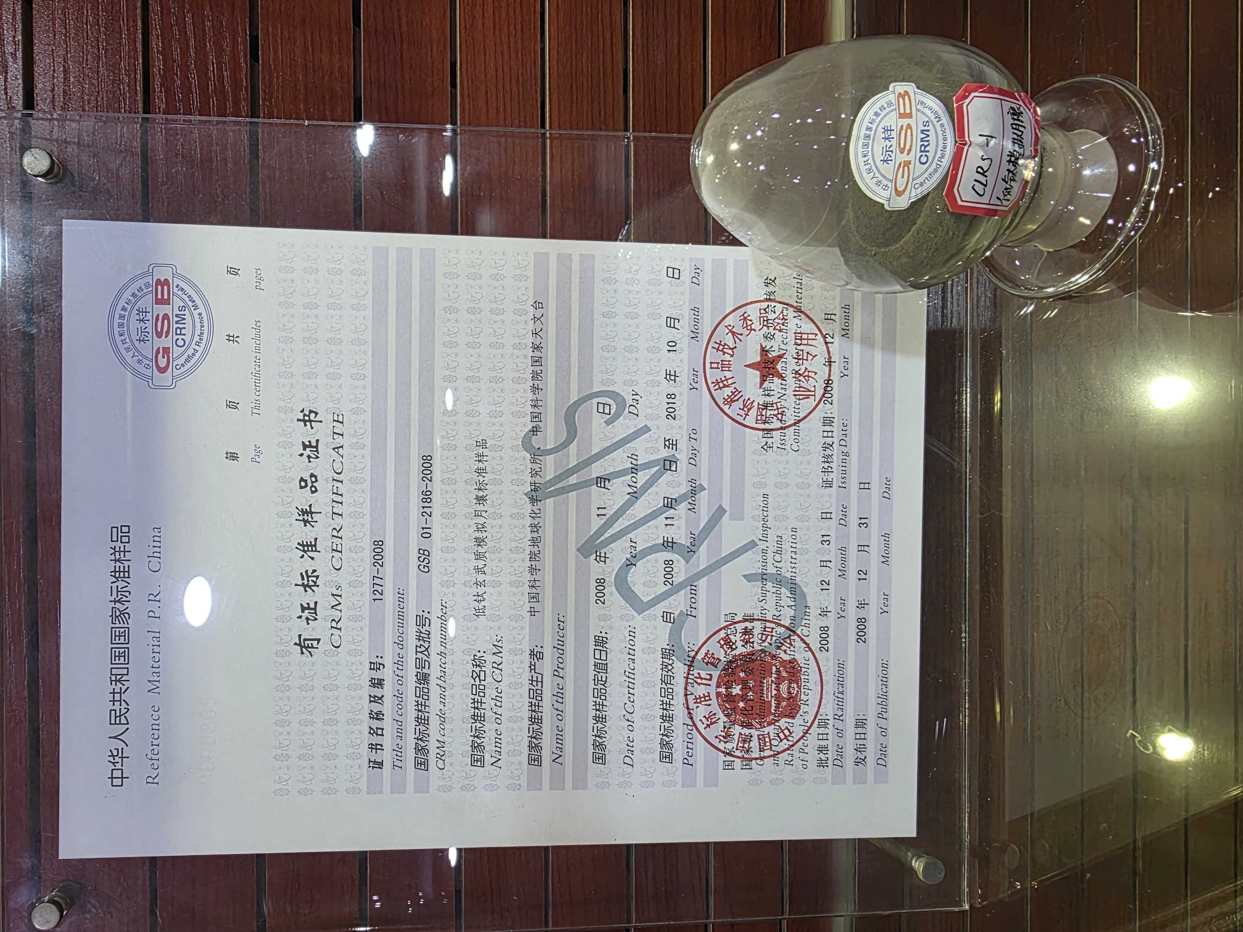 CLRS-1低钛模拟月壤:参照月球低钛型月壤的矿物组成、化学成分、密度和粒度等技术指标,选定玄武质火山岩作模拟月壤的初始物质,进行除杂、粉碎、研磨等一系列加工研制而成。标准样品为粉末状,粒度分布小于1mm的占95%,小于0.1mm的占50%。样品的矿物组成、化学成分、密度和粒度分布均匀,化学及物理性质稳定,与低钛型真实月壤相近。