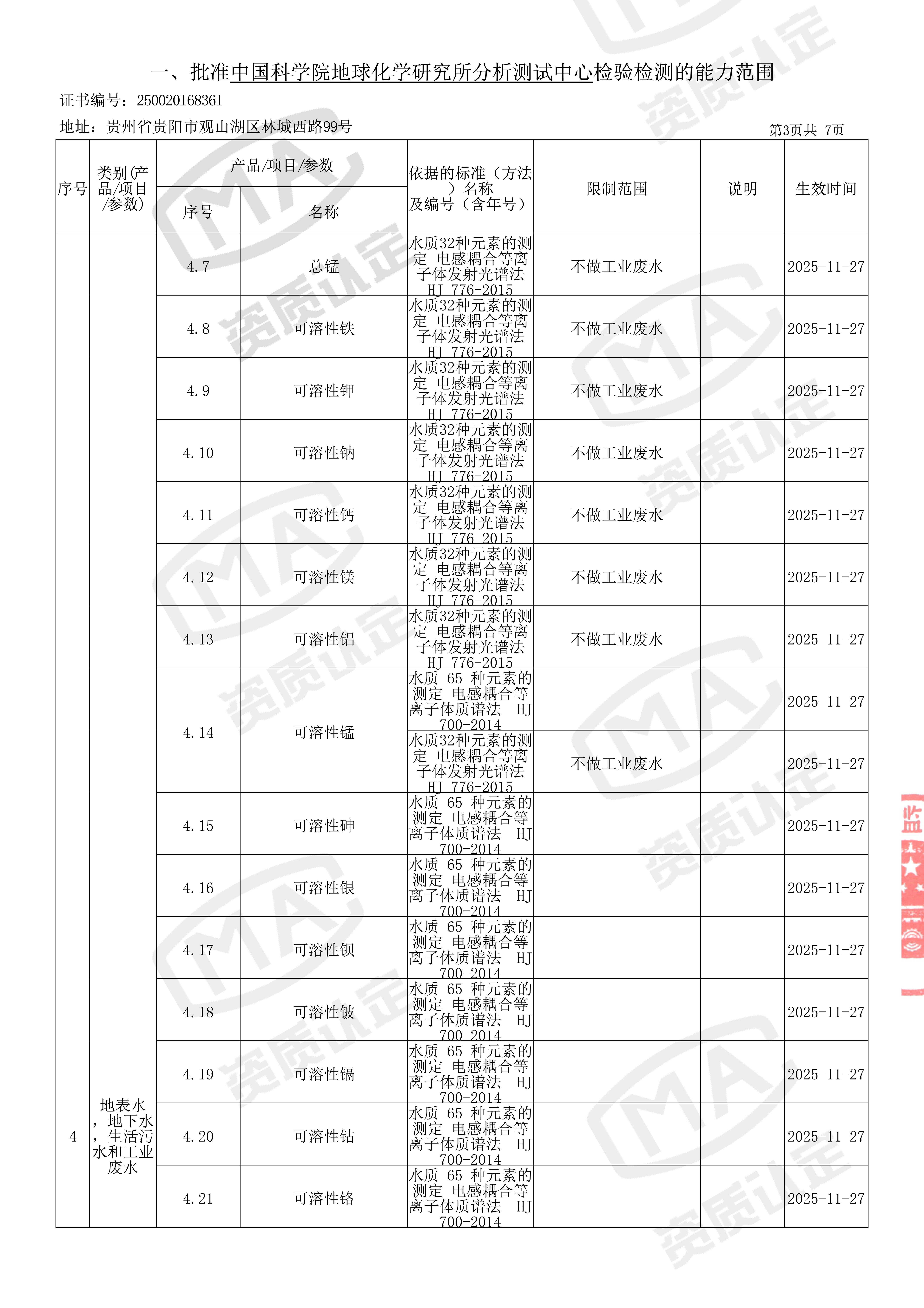 检测能力(含送样要求)