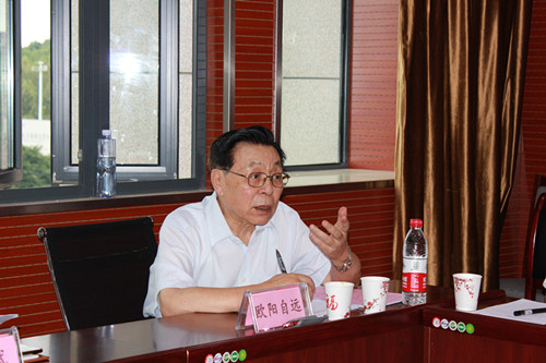 座谈会上,欧阳自远院士首先回顾了自己从学生时代走上科研工作岗位,从进行地质研究到开展地下核试验研究,从对陨石分析研究到进入嫦娥工程等一系列历程;随后对作家们的采访提问,欧阳自远院士进行了详细解答,并先后讲述了他与侯德封、涂光炽、安芷生、周卫健、刘丛强、郭承基、肖序常等院士之间的往事,为编写组提供了珍贵的采访资料。