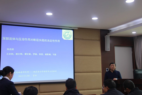 应中科院地球内部物质高温高压重点实验室的邀请,中国地震局地质研究所何昌荣研究员和周永胜研究员来到地球化学研究所进行学术交流与访问。访问期间,何昌荣研究员和周永胜研究员参观了中科院地球内部物质高温高压重点实验室,并于11月24日在高压室三楼会议室分别作了题为“深部流体与压溶作用对断层失稳的决定性作用”和“大陆下地壳流变实验进展”的学术报告。所内部分研究员及学生聆听了报告,报告会由高压室的张宝华研究员和代立东研究员主持。