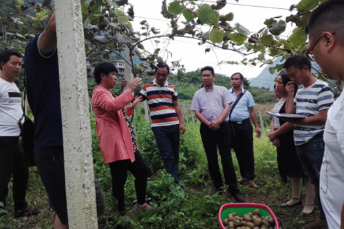 在此次科技扶贫工作中,钟彩虹研究员一行为六枝特区猕猴桃种植户及基层工作人员开展了猕猴桃采收及采后保鲜技术要点培训,现场解答了如何洗种、保存及播种、嫁接等系列技术问题,并与学员们进行互动交流。同时,到六枝特区联合村(中科大定点扶贫村)进行猕猴桃基地起垄、栽桩拉线的现场指导,到中寨村进行了猕猴桃近期管理及周年管理的现场指导与培训。