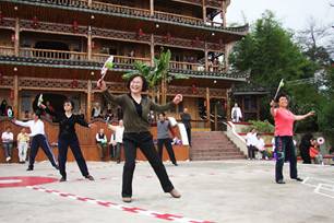 地化所太极队表演了精彩的太极拳、太极剑和太极扇。刚成立不久的柔力球队也给大家展示了他们的节目,虽然他们的表演不够成熟,但他们的精神却赢得了阵阵掌声。
