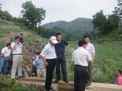 7月4日,检查组一行在李书记、王副所长及普定县有关领导的陪同下实地考察了普定站沙湾主站址和陈家寨示范区,现场听取了王副所长对普定站基建和示范区建设和进展情况的介绍,并同普定站科研人员进行了广泛的交流。
