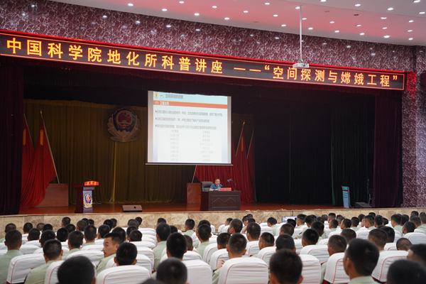 为普及行星科学知识,营造良好的科学氛围,7月13日,中国科学院地球化学研究所刘建忠研究员在武警贵州总队机动支队开展科普讲座活动,从空间探测和中国的嫦娥工程等方面向武警官兵们科普行星科学知识。