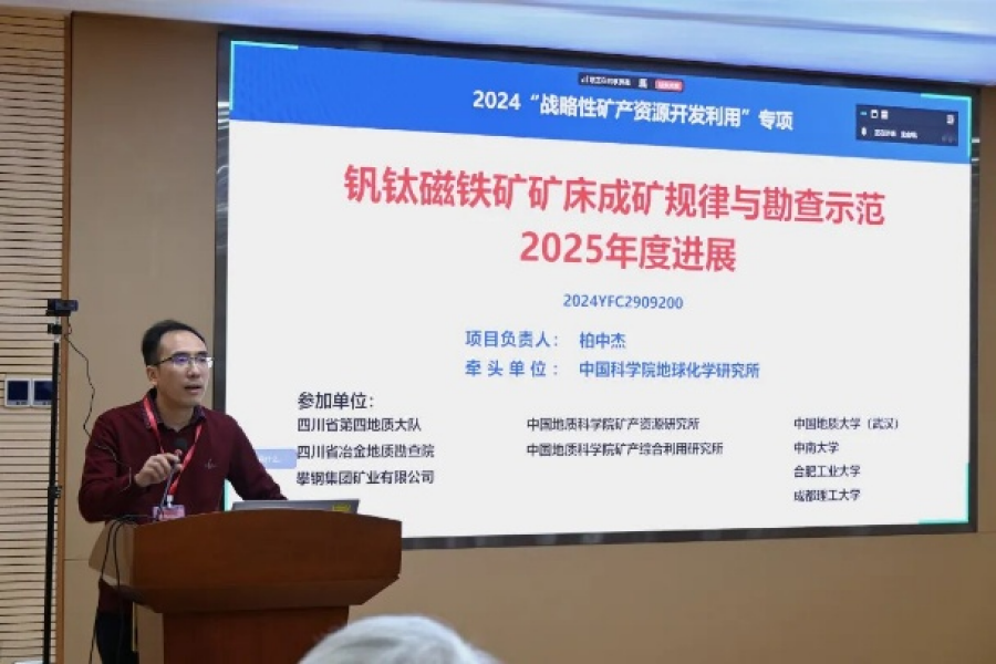 2月5日,由中国科学院地球化学研究所(以下简称地化所)牵头承担的国家重点研发计划“战略性矿产资源开发利用”专项——“钒钛磁铁矿矿床成矿规律与勘查示范”项目2025年度进展会在贵阳顺利召开。特邀专家与项目组全体成员齐聚一堂,系统总结项目年度研究成果,深入研讨核心科学问题与关键技术攻关路径,为项目高质量推进凝聚共识、明确方向。