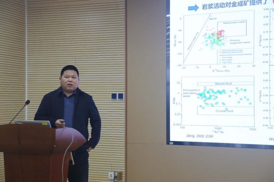 应关键矿产成矿与预测全国重点实验室邀请,长安大学张海东教授和中国地质大学(北京)翟德高教授于3月26日做客第72期“地化所青年学术论坛”,分别做了题为“金成矿与岩浆活动间成因联系”和“锑成矿:进展、问题、思考”的学术报告。报告由关键矿产室高剑锋研究员主持,所内科研人员和研究生100余人参加了本次报告会。