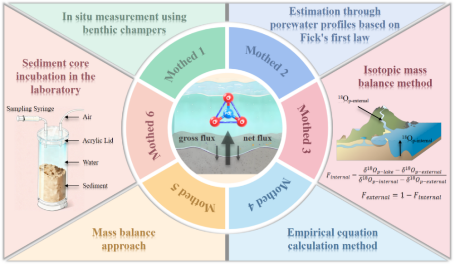 富营养化是我国水污染防治攻坚的重点任务,而磷是湖库富营养化的关键限制因子。过去三十年来,我国外源污染(如工业废水、生活污水、农业面源等)治理工作取得显著成效,外源磷输入逐步得到有效控制。在未来,内源磷(沉积物磷、悬浮颗粒物磷)成为湖库富营养化防治的关键。由于当前对湖库内源磷的通量估算和循环机理缺乏系统认识,严重制约了我国富营养化防治工作的科学实施进程。为此,中国科学院地球化学研究所陈敬安研究员团队王敬富研究员系统梳理了湖泊沉积物内源磷通量的定量方法,并以典型富营养化湖泊为例,研究了内源磷的生物地球化学循环过程及效应。